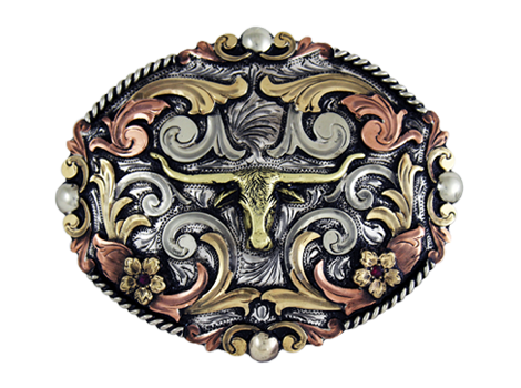 Upgraded fully custom western trophy buckles, finished with our Micro-Tech Engraving. All elements are handmade and carefully crafted. Extra stones, borders and layers are included. Stones are properly set directly into the metal by our jewelers.